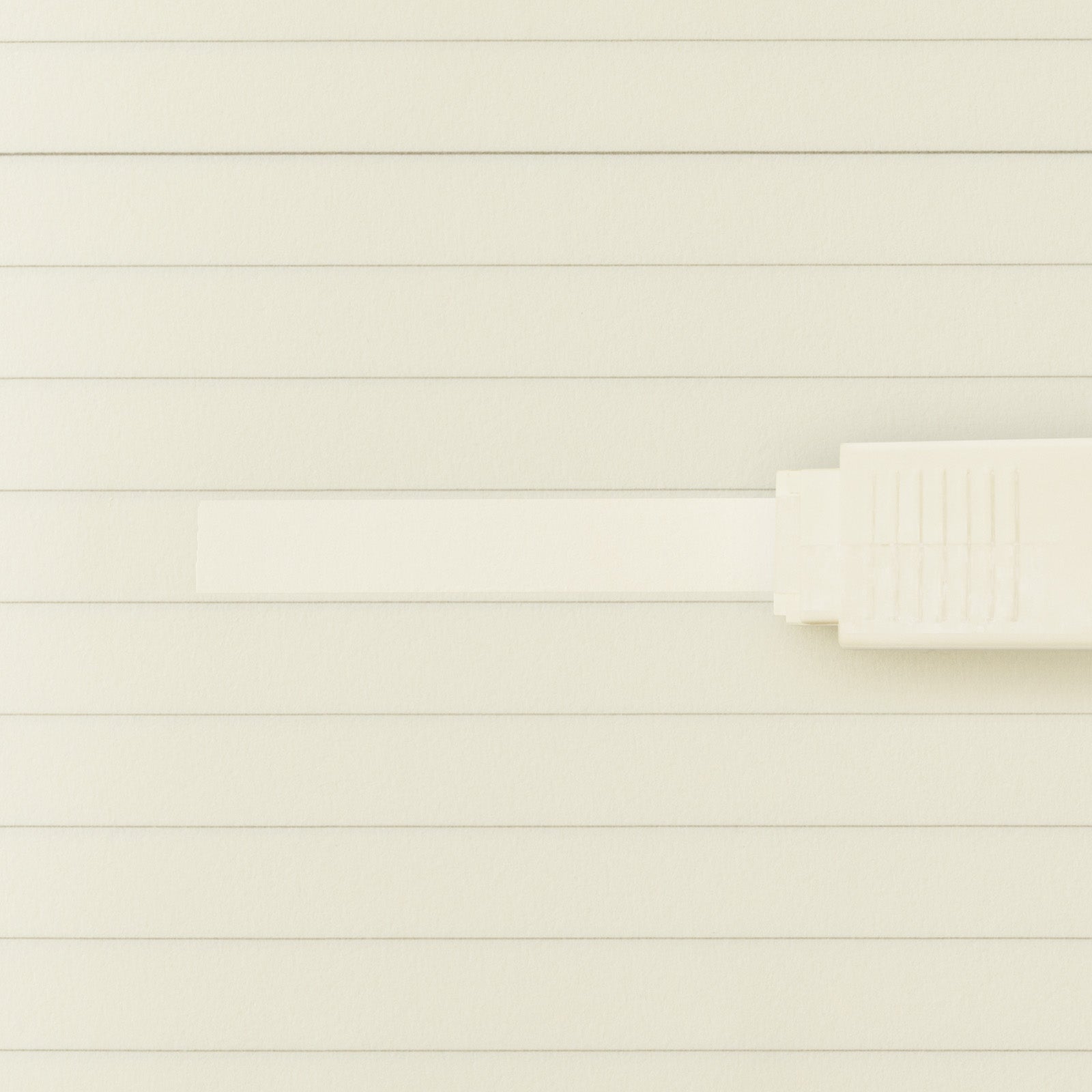 The tape closely resembles the color and texture of MD paper, making corrections less noticeable and blending beautifully into the page. Its width is 6mm, matching the horizontal lines (7mm) of the MD notebook. Smart corrections are possible without ruining the lines.
